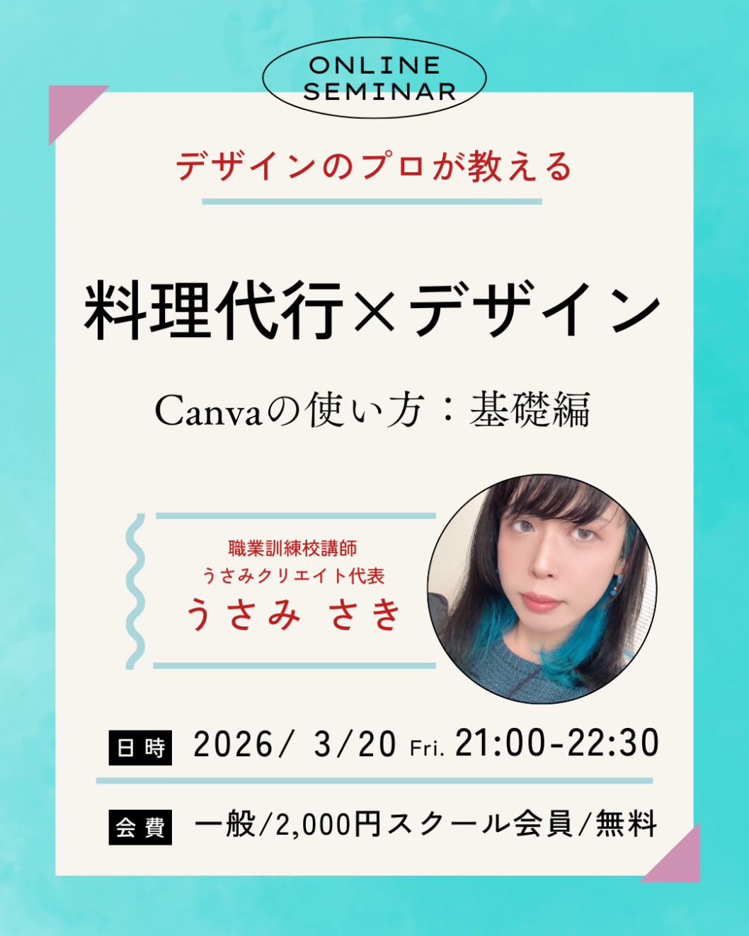 【3/20(金) 21:00〜】オンラインセミナー「Canvaの使い方:基礎編」